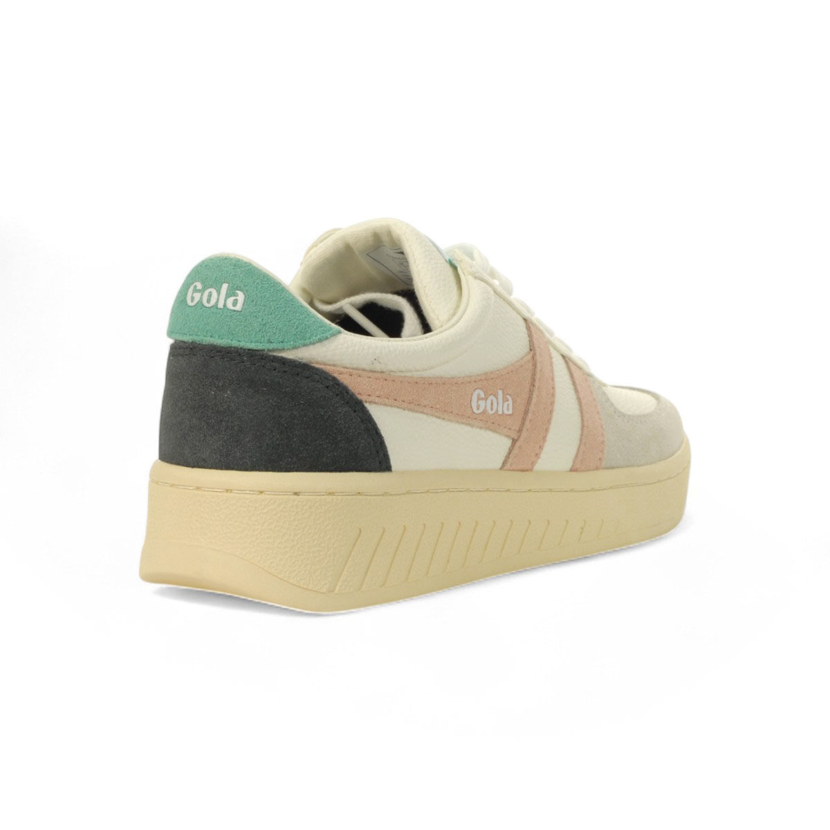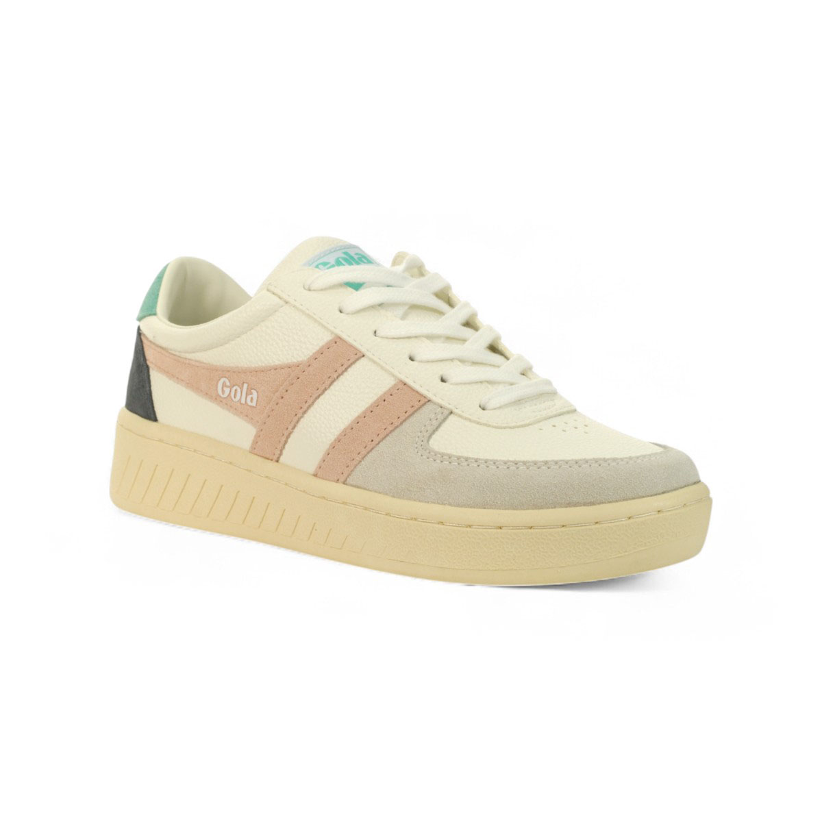With a pastel colour palette, Gola Grandslam Trident for women speaks volumes when it comes to individual sneaker style. This classic women’s court sneaker features a deep cup sole unit in vintage looking off white and is complemented with a white upper and suede pastel colour pops. Wear anywhere, anyhow you wish; Grandslam Trident teams well with so many looks.