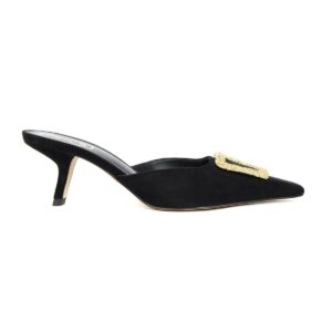 • Leather or suede upper with an open almond toe