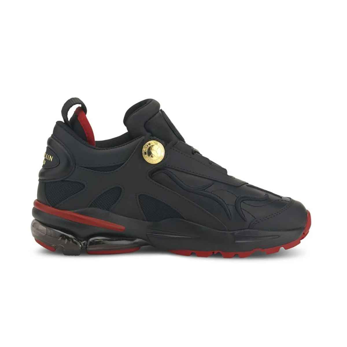 Bursting with stylish details, from the gold medallion branding to the embroidered upper to the red highlights on the sole and lining – complete with optional red laces – these chunky Balmain trainers will add swagger to your step.