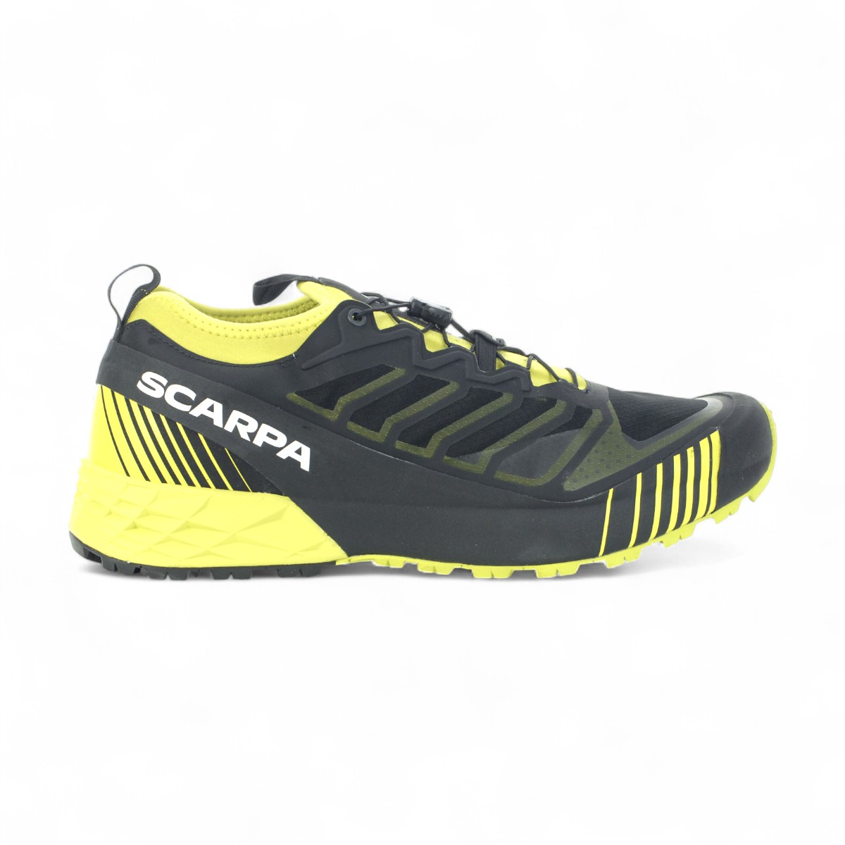 Highly durable and technically precise, the lightweight Ribelle® Run is the ideal choice for short to medium distance training and racing in rugged, rocky terrain. The upper is mesh and welded PU that is reinforced with a translucent ripstop for extra abrasion resistance. A climbing inspired, full-perimeter TPU rand provides more structure and a high level of protection. The fit is more precise due to a medium width last that is slightly lower volume, giving it a precise feel and allowing secure navigation of technical trails. This fit is further enhanced by our Sock-Fit Slip On construction, where the ankle collar is integrated with the tongue in a stretch fabric, reducing bulk and sealing out trail debris. Finishing off the upper is our quick cinch lacing system for a quick and secure closure. Underfoot, our SuperGum rubber compound provides outstanding traction and friction, and is more durable than comparable rubber.
