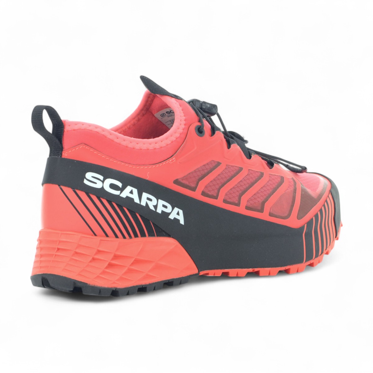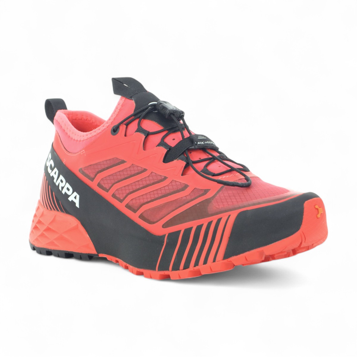 Highly durable and technically precise, the lightweight Ribelle® Run is the ideal choice for short to medium distance training and racing in rugged, rocky terrain. The upper is mesh and welded PU that is reinforced with a translucent ripstop for extra abrasion resistance. A climbing inspired, full-perimeter TPU rand provides more structure and a high level of protection. The fit is more precise due to a medium width last that is slightly lower volume, giving it a precise feel and allowing secure navigation of technical trails. This fit is further enhanced by our Sock-Fit Slip On construction, where the ankle collar is integrated with the tongue in a stretch fabric, reducing bulk and sealing out trail debris. Finishing off the upper is our quick cinch lacing system for a quick and secure closure. Underfoot, our SuperGum rubber compound provides outstanding traction and friction, and is more durable than comparable rubber.