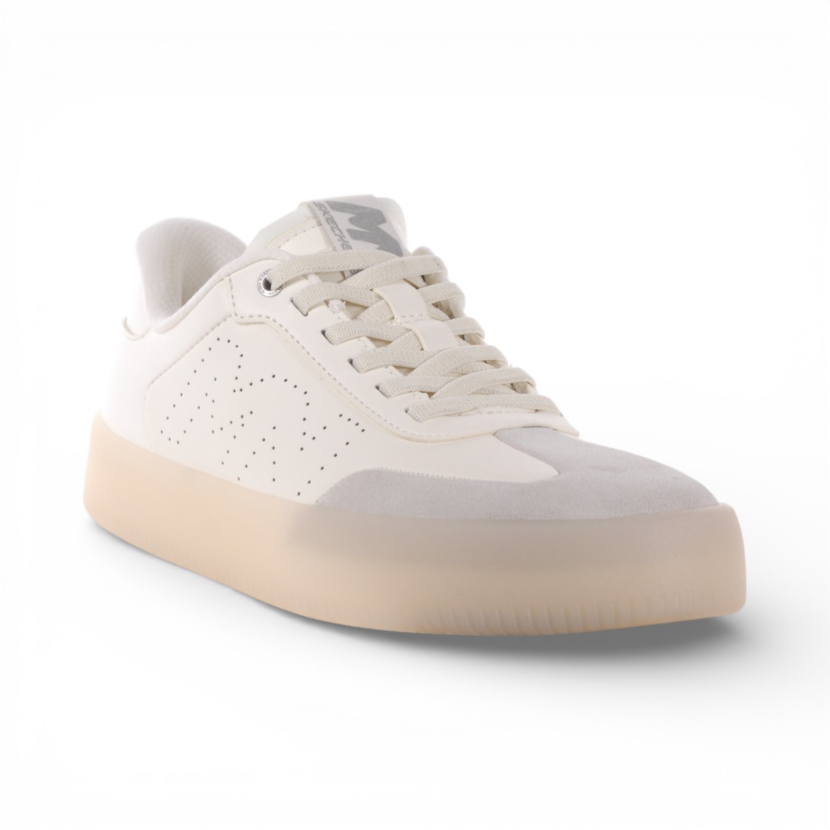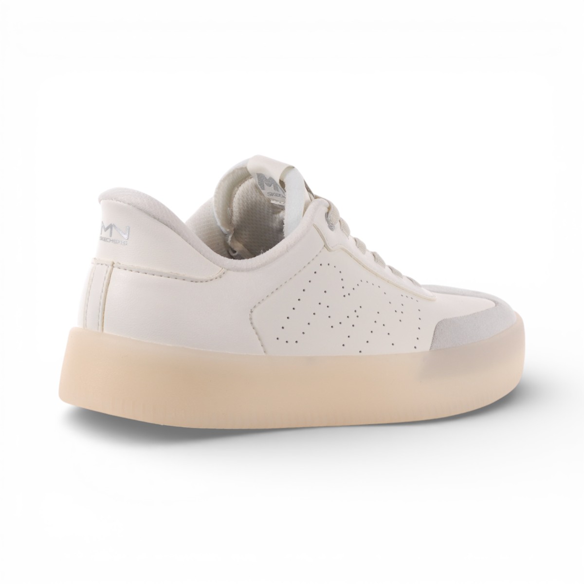 A fresh classic combines with luxe comfort in the stylish Skechers Hands Free Slip-ins® Mark Nason: Salsa Cup – Skyller. Designed with our Heel Pillow®, this timeless slip-on features a leather and synthetic upper with perforated logo detail, fixed stretch laces, and a cushioned Memory Foam Lux insole.