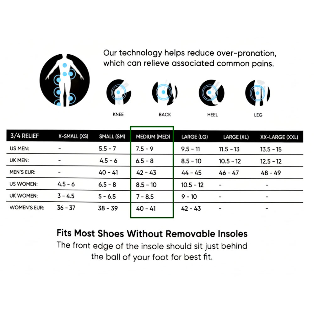 Indulge in all-day comfort and support with Vionic’s Relief 3/4 Medium Support orthotics. Featuring a deep heel cup, these premium insoles provide unparalleled everyday support for any activity, from a leisurely hike to a long day at the office.